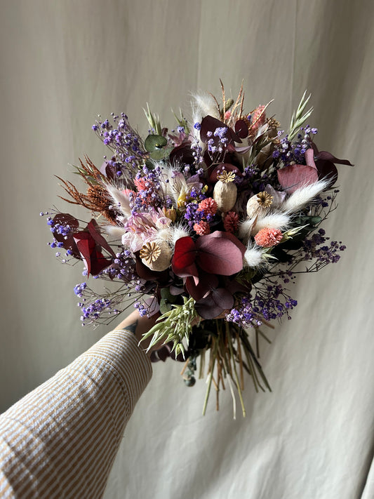 Chez Souffle d'Antan, on donne une longue vie aux fleurs pour créer des bouquets et décorations uniques, durables et empreints de poésie.