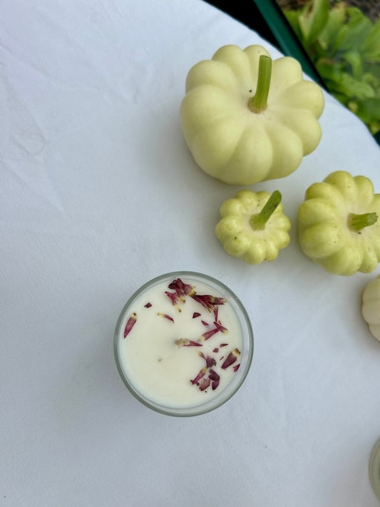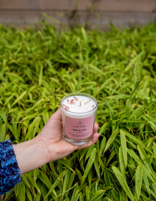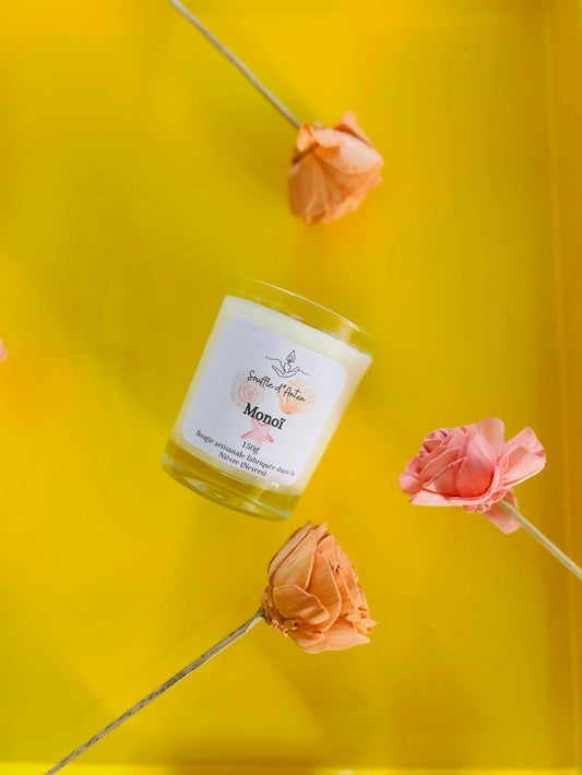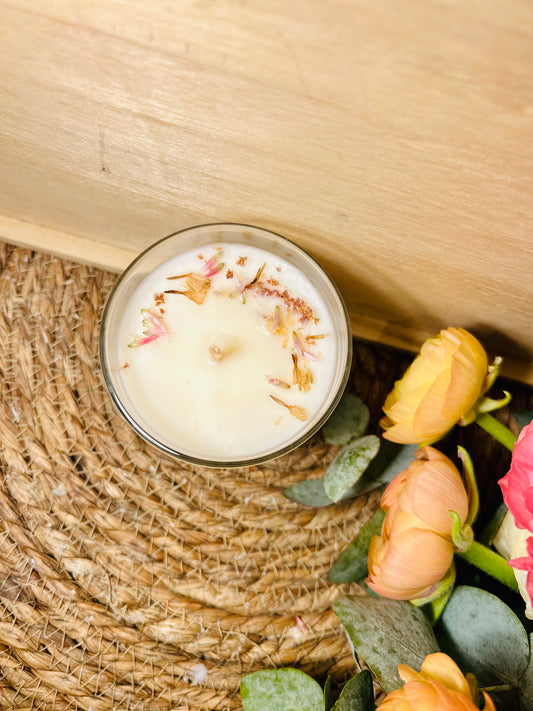 De la cire de soja végétale, des parfums de Grasse, des mèches en coton et fibre de lin, le tout décoré de fleurs séchées !