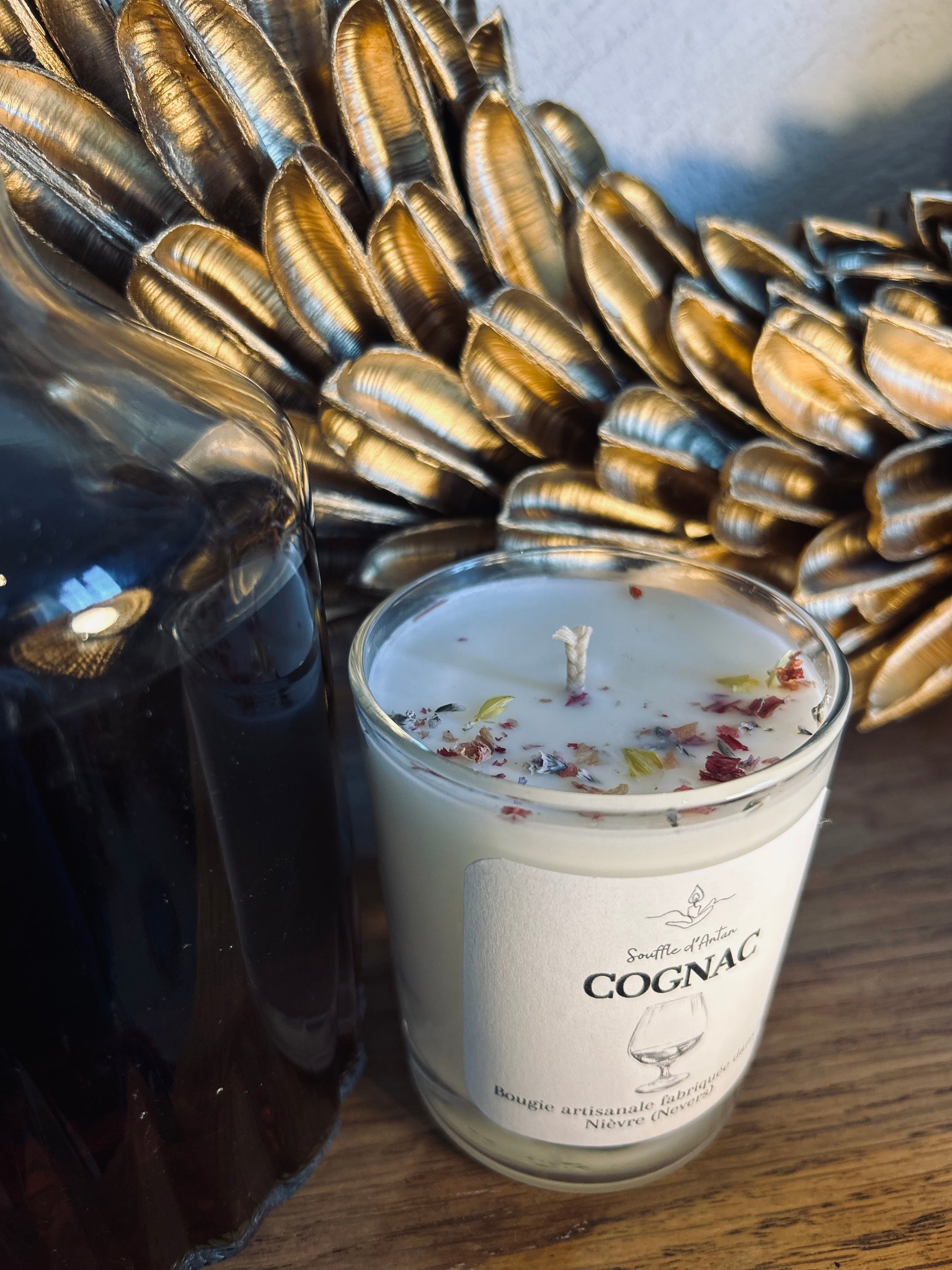 Cire de végétale 100% soja, biodégradable. Mèche en coton et fibre de lin. Parfum de Grasse sans CMR, ni phtalates. Bougie décorée de fleurs séchées.