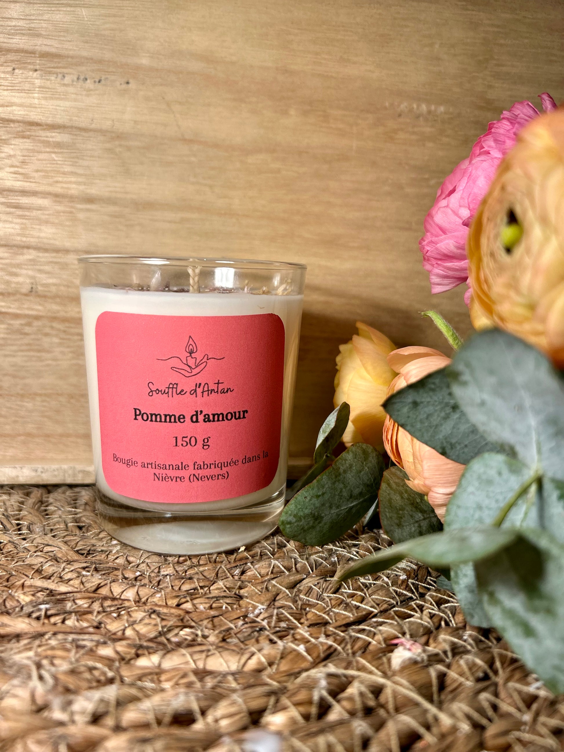 Cire de végétale 100% soja, biodégradable. Mèche en coton et fibre de lin. Parfum de Grasse sans CMR, ni phtalates. Bougie décorée de fleurs séchées.