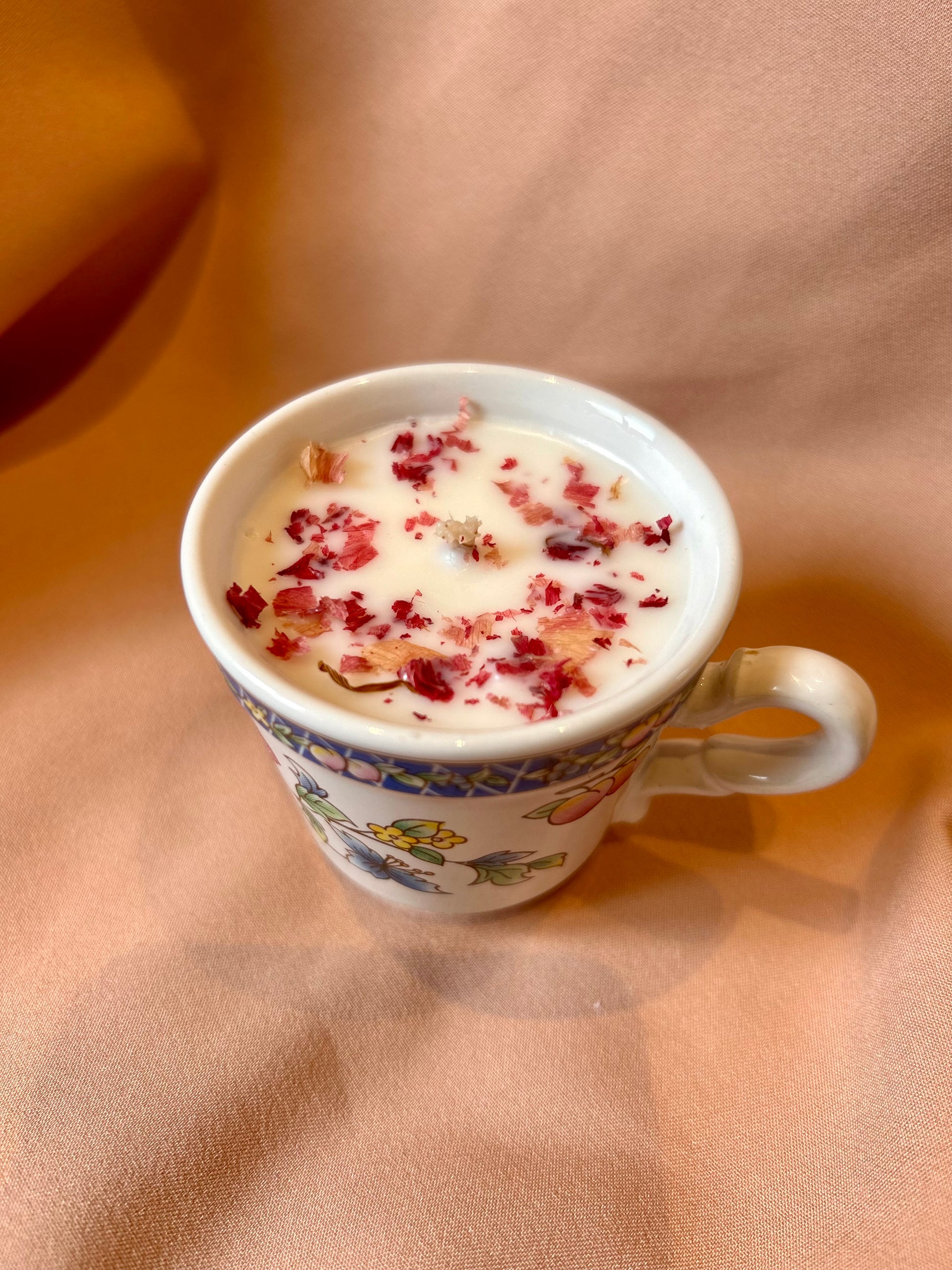 Une bougie unique fabriquée à base de cire végétale 100% soja biodégradable, parfum de Grasse et mèche en coton.