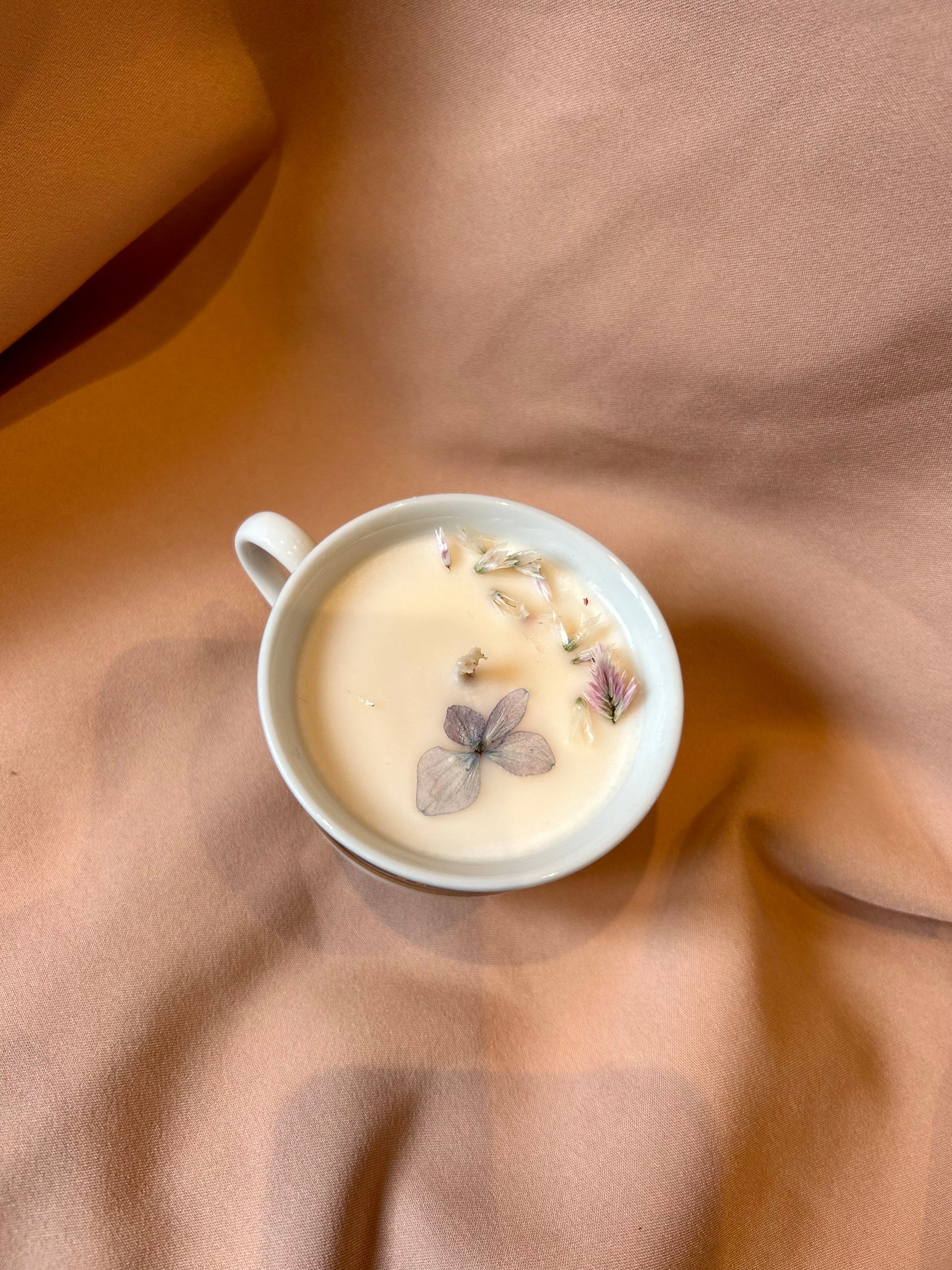 Une bougie unique fabriquée à base de cire végétale 100% soja biodégradable, parfum de Grasse et mèche en coton.